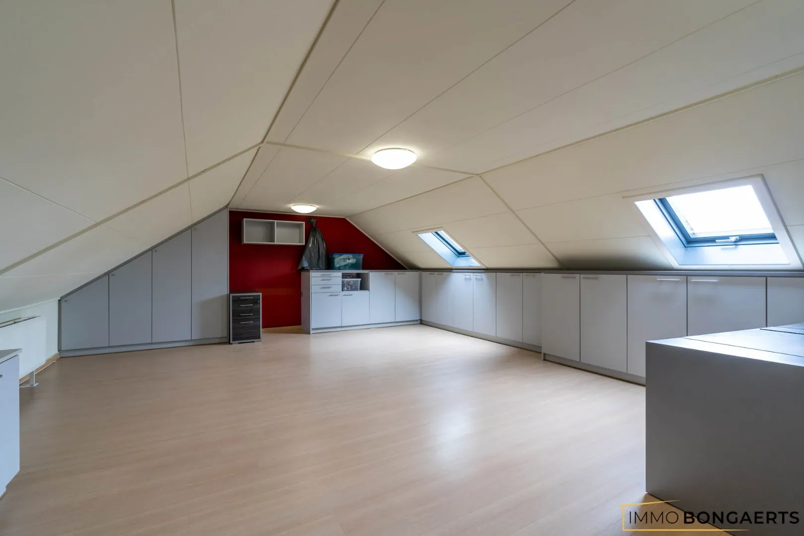 Daarnaast is het perfect mogelijk om wonen en werken te combineren. Op de eerste verdieping zijn er naast de nachthal en een toilet nog drie ruime slaapkamers. Op de tweede verdieping is er een grote polyvalente ruimte die perfect ingericht kan worden als woonkamer of bureel.