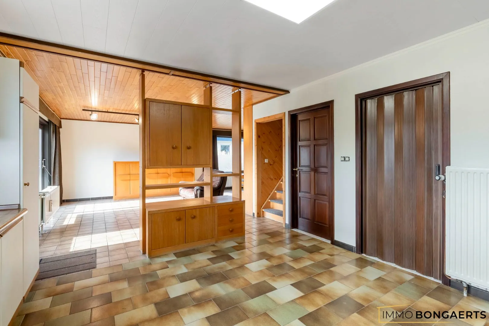 De woning is als volgt ingedeeld: inkomhal, leefruimte, keuken, berging, 3 slaapkamers, badkamer en toilet. Via een vaste trap kan je naar de zolder die ingericht zijn als extra slaapkamer of hobbyruimte.