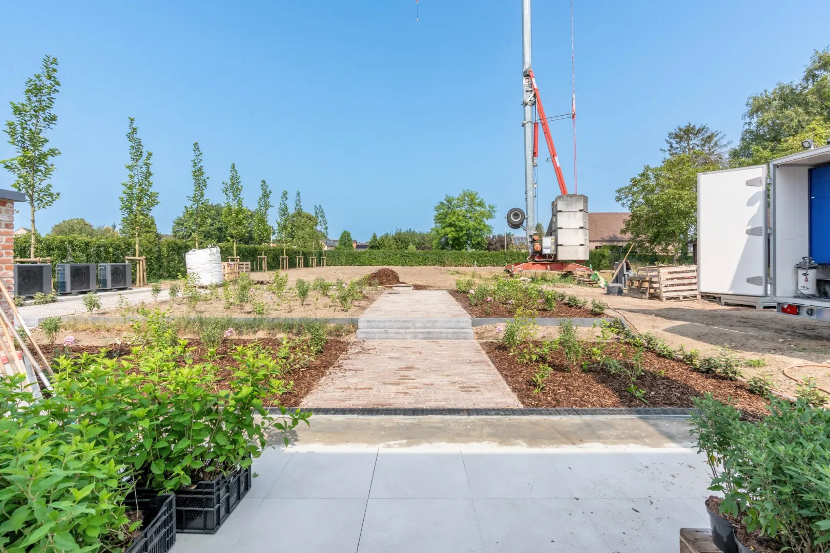 De indeling is als volgt: inkomhal met vestiaire, woonkamer met open keuken, ruime berging, technische ruimte, badkamer, apart toilet en drie slaapkamers.