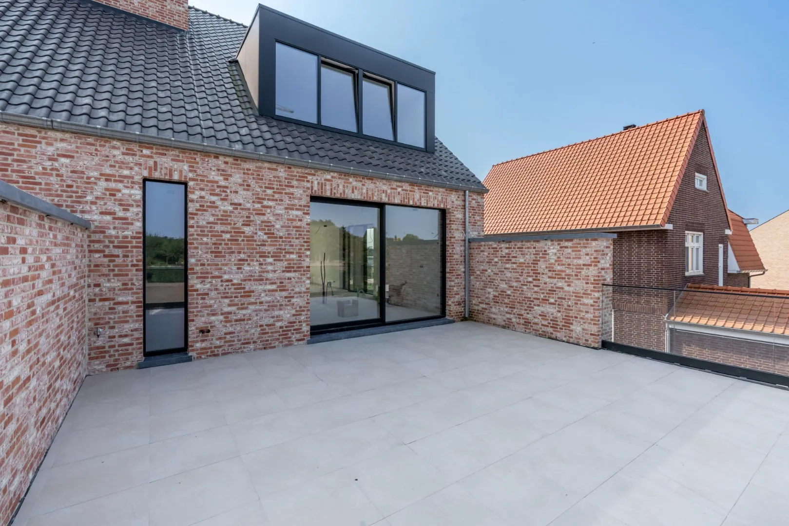 Het appartement beschikt over hoge plafonds (+- 3,5 meter) en een panoramisch raam met toegang tot een groot terras en privatieve tuin. Bovendien is er een tweede terras aan de voorzijde aanwezig. Verder wordt er een carport voorzien.