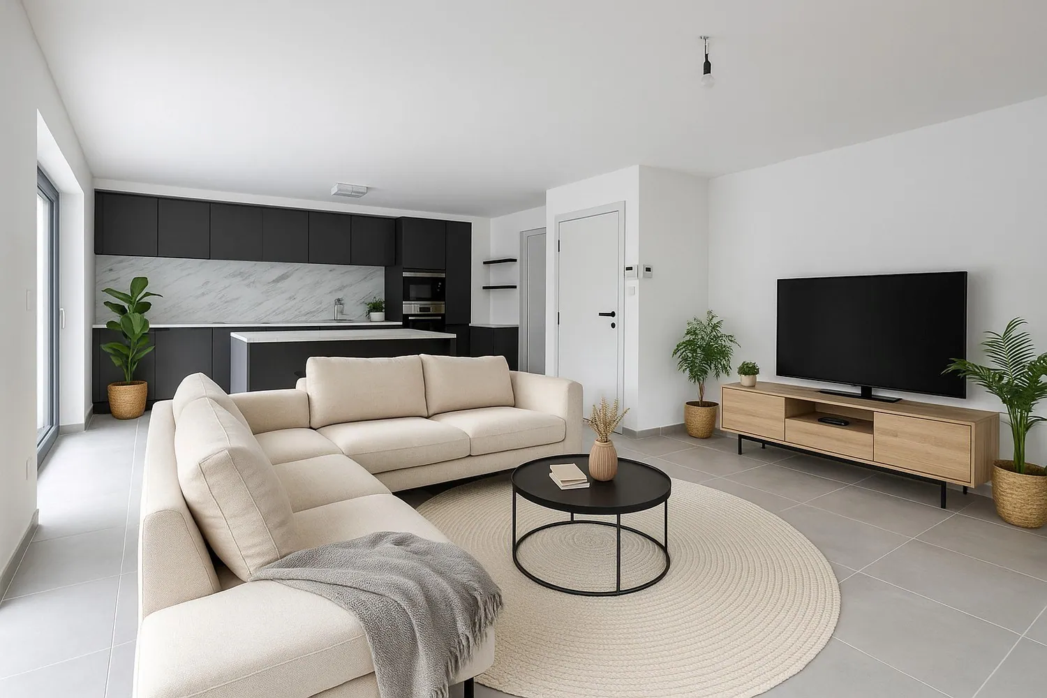 + LICHTRIJKE LEEFRUIMTE MET NIEUWE OPEN KEUKEN EN AANSLUITEND TERRAS