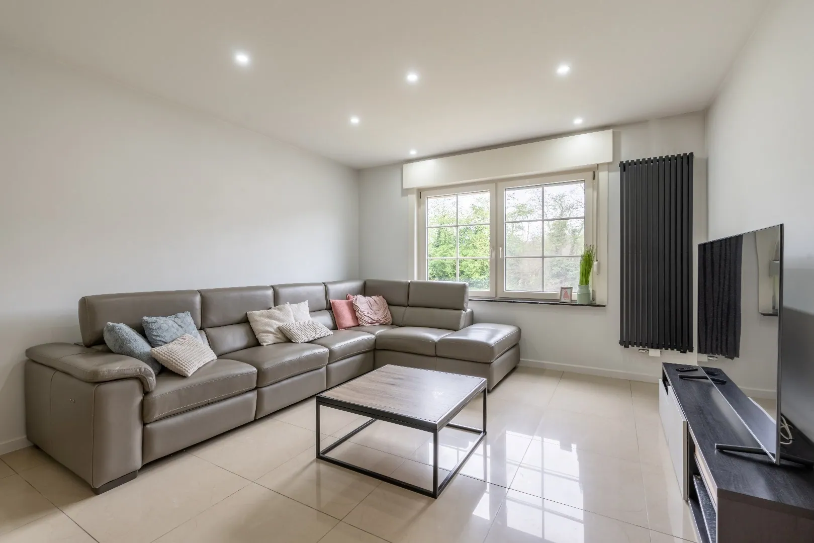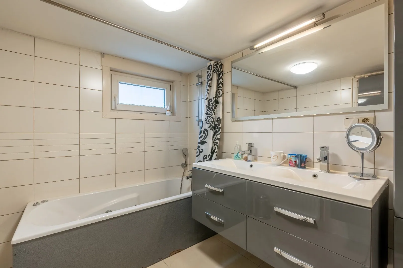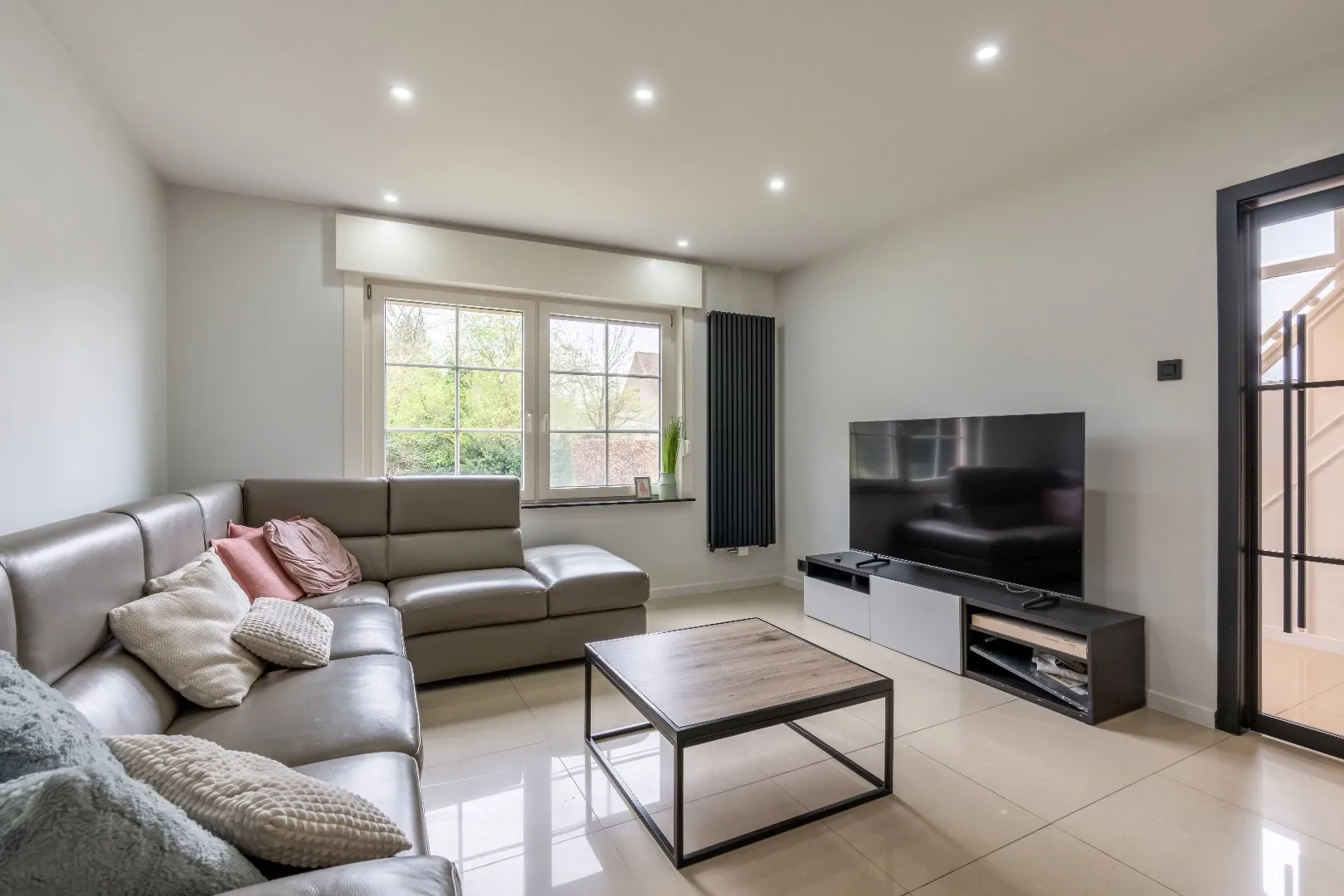 De leefruimte kreeg een totale make-over en op de bovenverdieping werd een ruime badkamer geïnstalleerd met bad en inloopdouche.