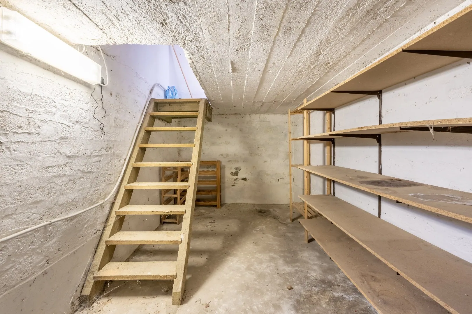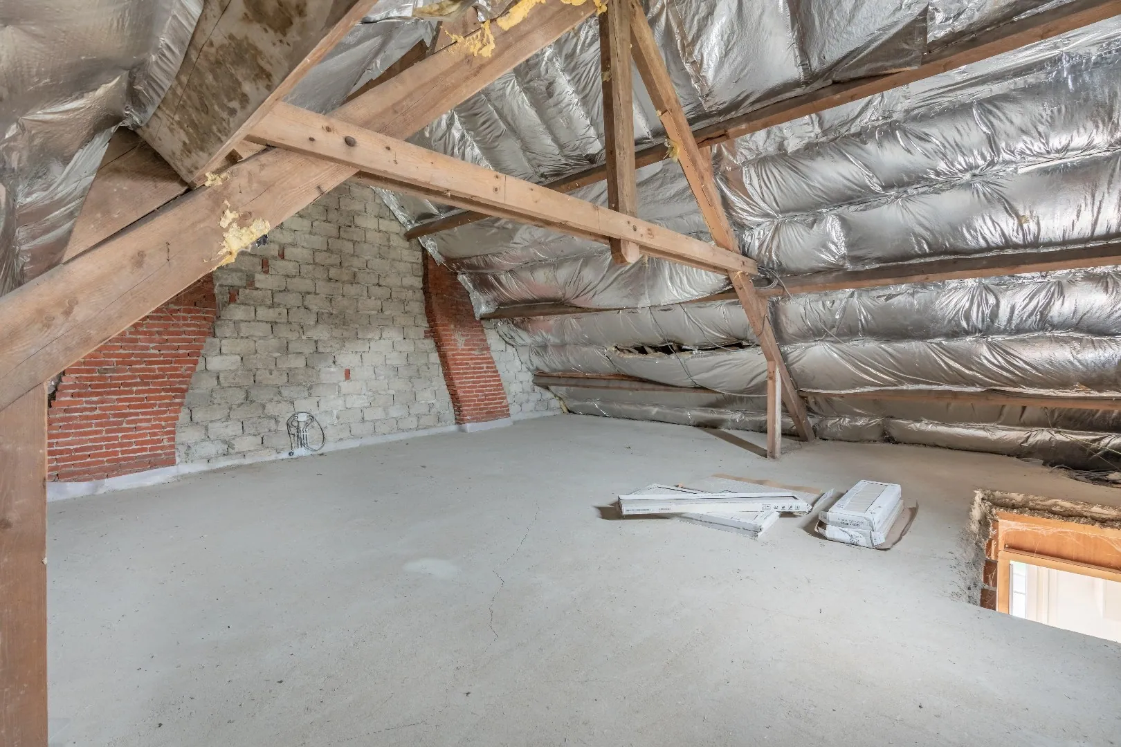 De zolder is toegankelijk met een vaste trap en kan naar smaak ingericht worden.(chappe en isolatie reeds voorzien)