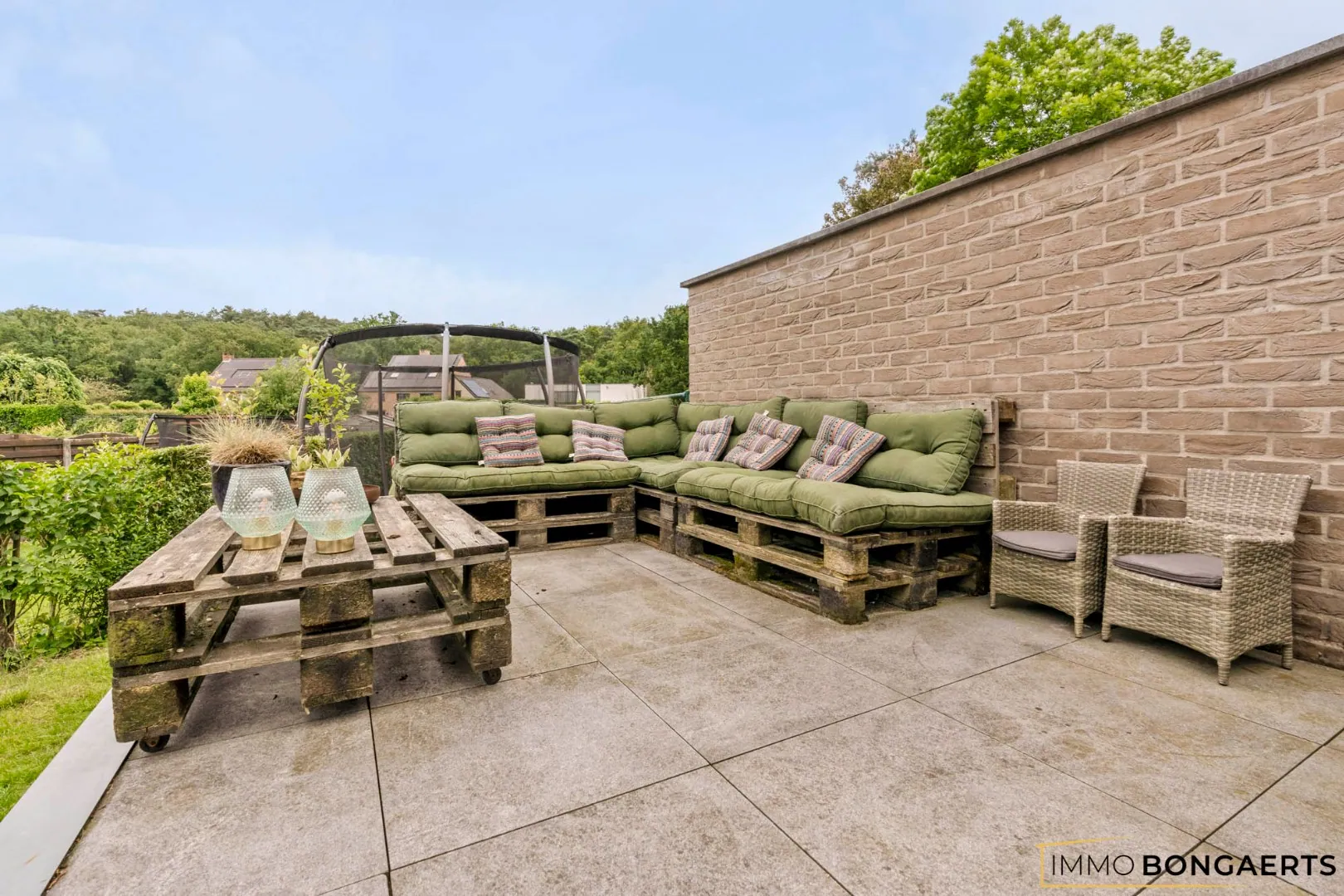 De tuin, en het verhoogde terras zijn gelegen op het noordoosten, biedt de perfecte plek om van de zon te genieten terwijl je toch wat schaduw hebt. De garage biedt voldoende ruimte voor het parkeren van de wagen.