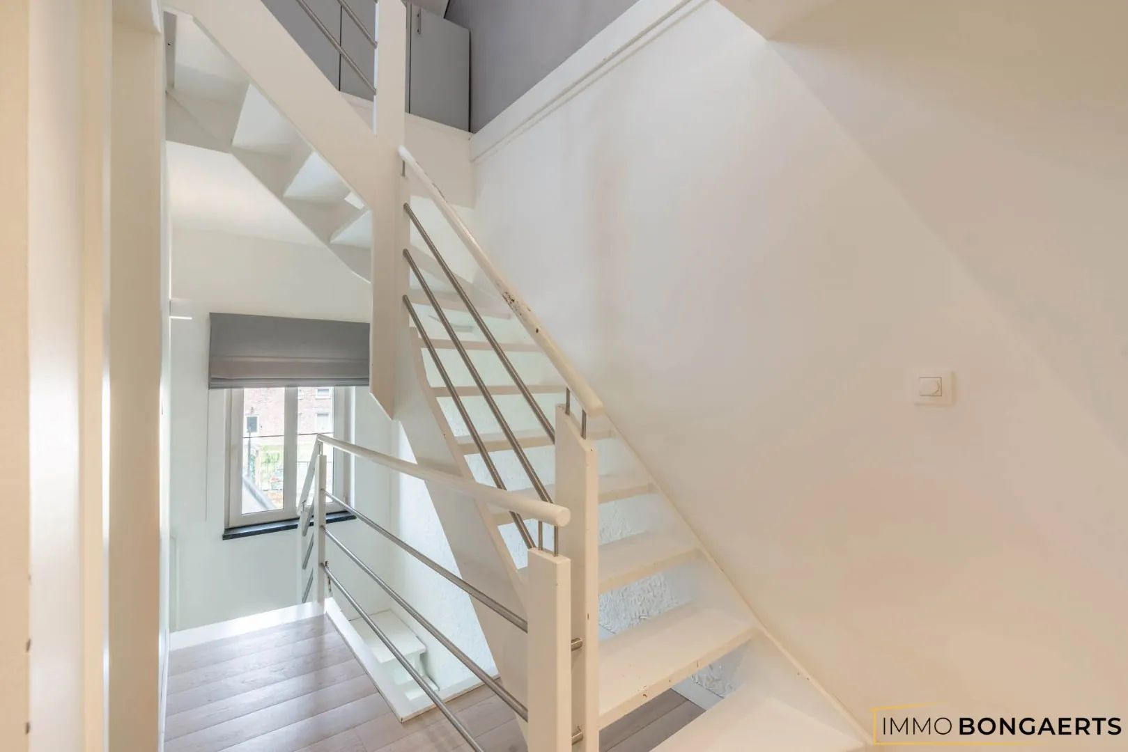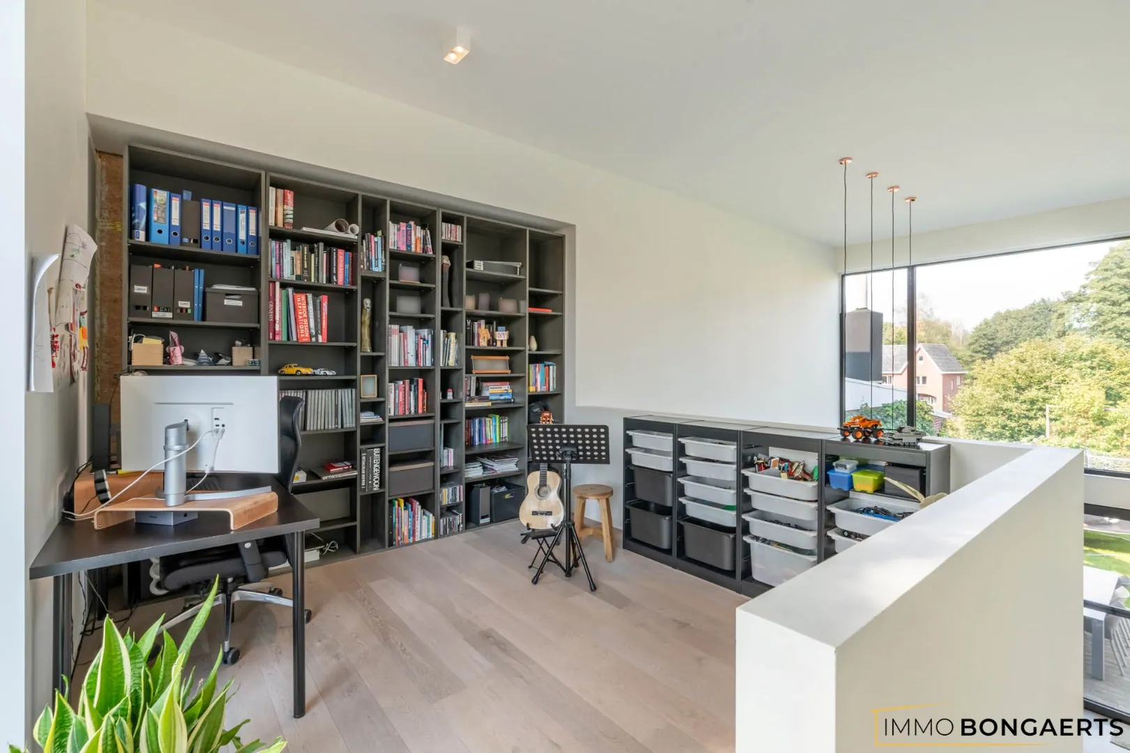 De woning is als volgt ingedeeld: inkomhal, kleine kelder, leefruimte, open keuken met berging en toilet. In de nieuwbouw werd op het eerste verdiep een prachtige bureelruimte voorzien.