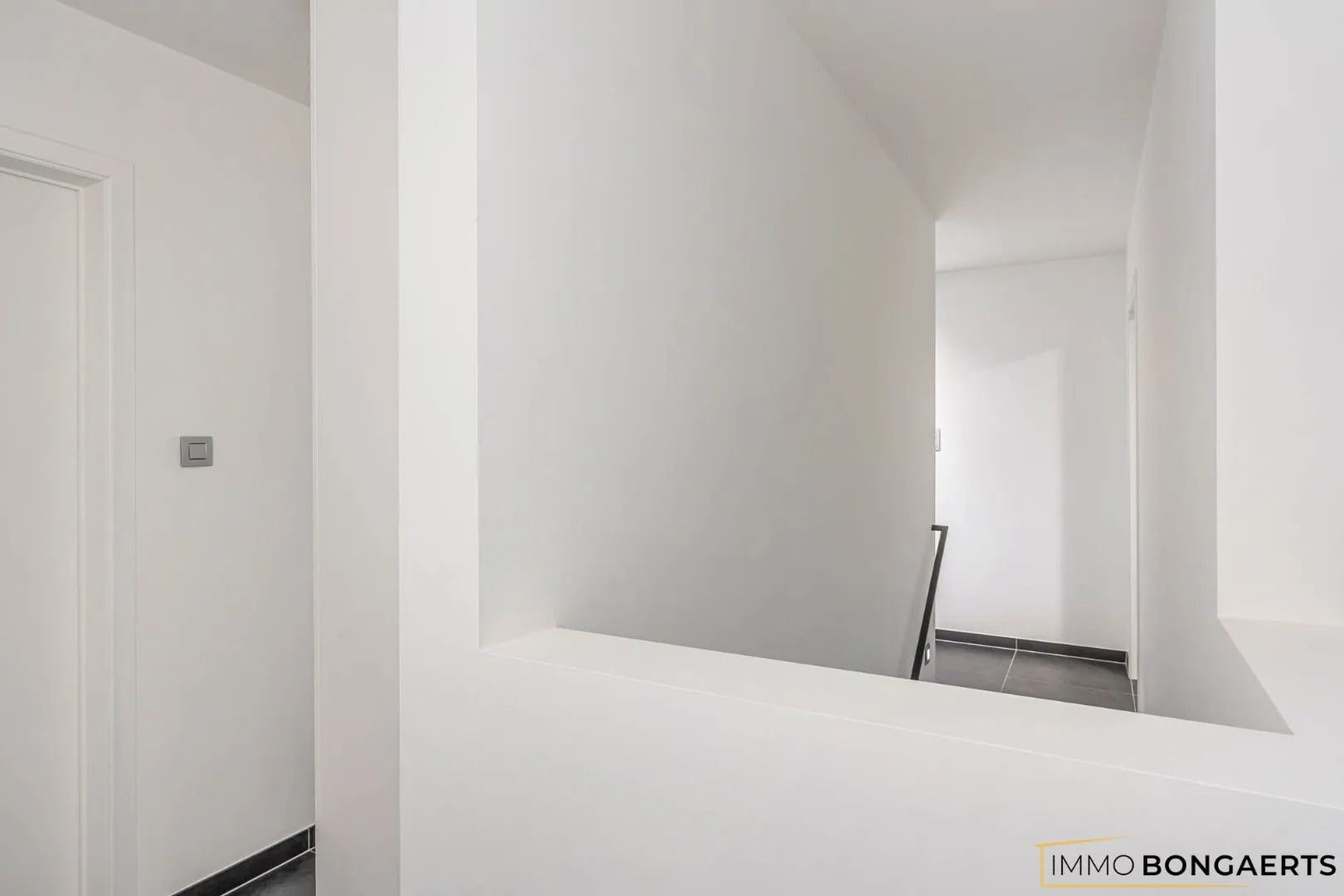 Gelijkvloers: inkomhal, toilet, leefruimte met open keuken, berging/wasplaats, garage (momenteel bureel en speelkamer) en badkamer met inloopdouche;