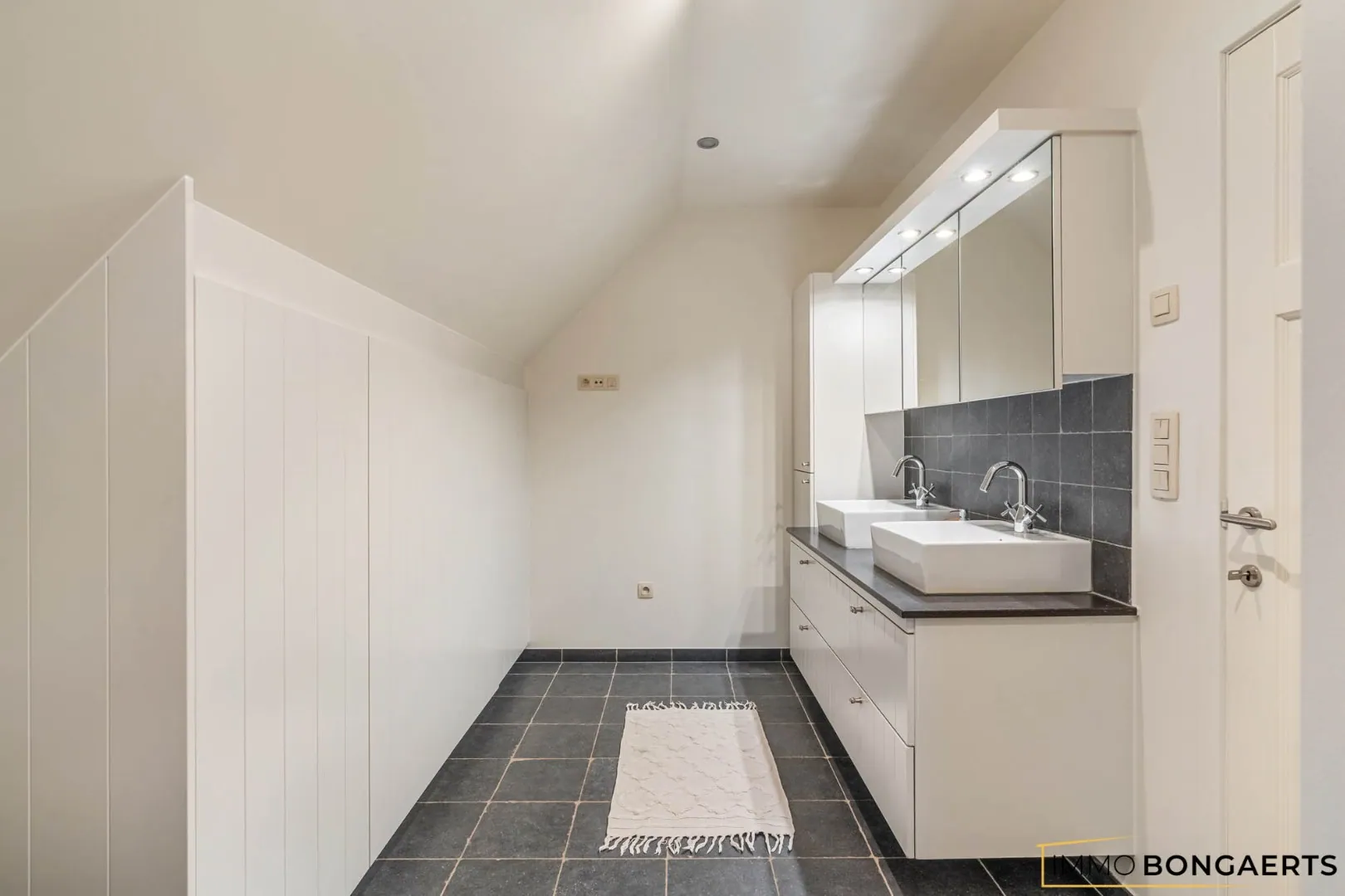 Via de nachthal heeft u toegang tot 3 slaapkamers en de badkamer. De masterbedroom is voorzien van een dressing en tv-aansluiting is overal aanwezig. De badkamer is voorzien van alle comfort en beschikt over een dubbele lavabo, ligbad en inloopdouche. Daarnaast is er nog een apart toilet aanwezig.