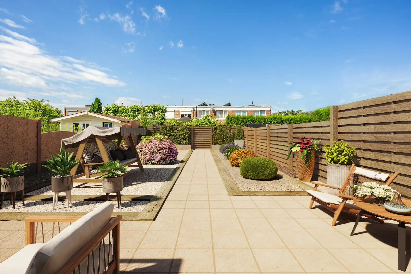 -Gezellige tuin met mogelijkheid tot achteruitgang/ingang.