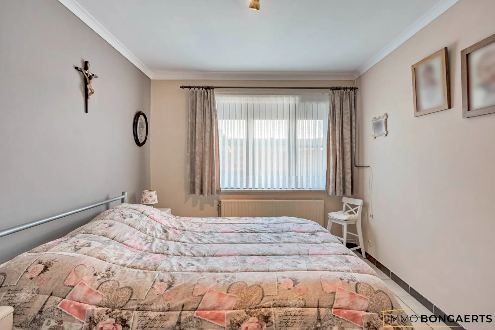Bij binnenkomst bevinden we ons in de inkomhal die ons leidt naar de gezellige woonkamer met aansluitend de ingerichte keuken. Deze geeft ons toegang tot lichtrijke veranda die in nauw contact staat met de aangelegde tuin.