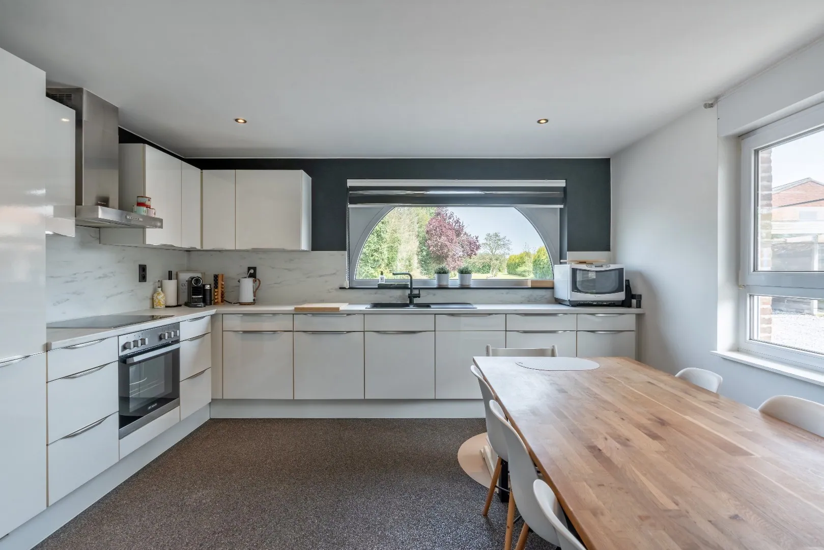 De mooie leefruimte en keuken hebben veel lichtinval en de keuken is voorzien van alle comfort.
