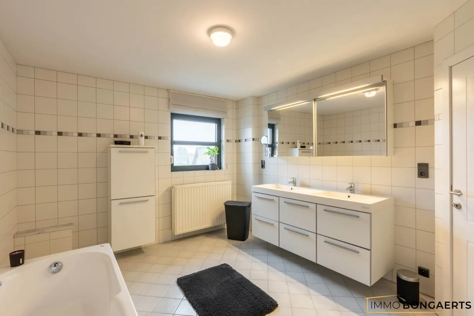 Deze prachtige woning is gelegen in het centrum van Neeroeteren en is perfect voor gezinnen die op zoek zijn naar een ruime en comfortabele woning. Het huis is gebouwd in 2001 en heeft een perceeloppervlakte van 368m2 en een bewoonbare oppervlakte van 205m2. De woning beschikt over een ruime tuin met een zuidwestelijke oriëntatie, wat betekent dat u de hele dag kunt genieten van de zon.