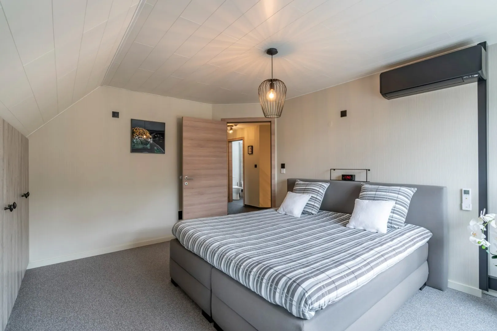 De woning beschikt over drie ruime slaapkamers, wat ideaal is voor een gezin met kinderen. Elke slaapkamer is voorzien van grote ramen die zorgen voor veel natuurlijk licht en een rustgevend uitzicht op de tuin.