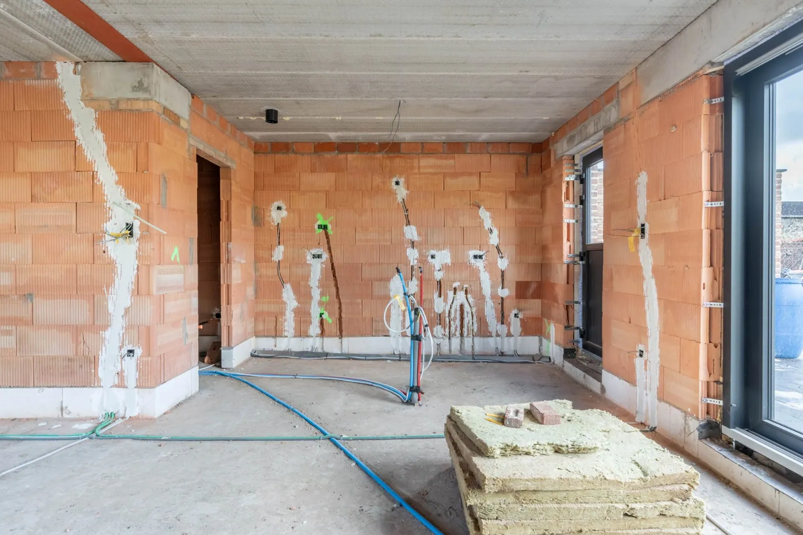 De woning kan casco+ (zonder vloeren, trapbekleding, leuning, zonnepanelen, keuken, badkamer en binnendeuren) of volledig afgewerkt opgeleverd worden. Bij de volledig afgewerkte woning heeft de koper inspraak in de uitvoering van de vloeren, badkamer en keuken (in te richten volgens de budgetten vermeld in het lastenboek). De geadverteerde prijs is voor de casco+ woning.
