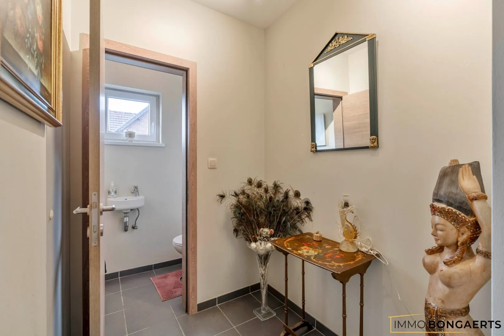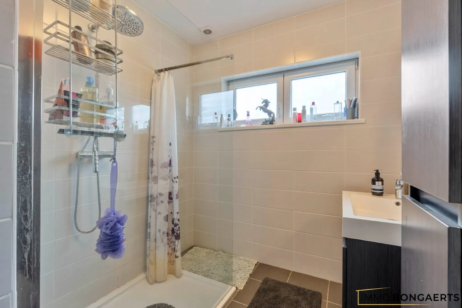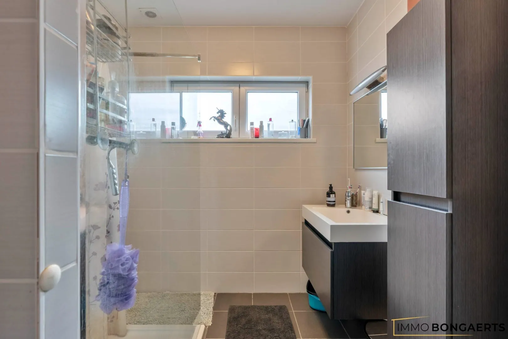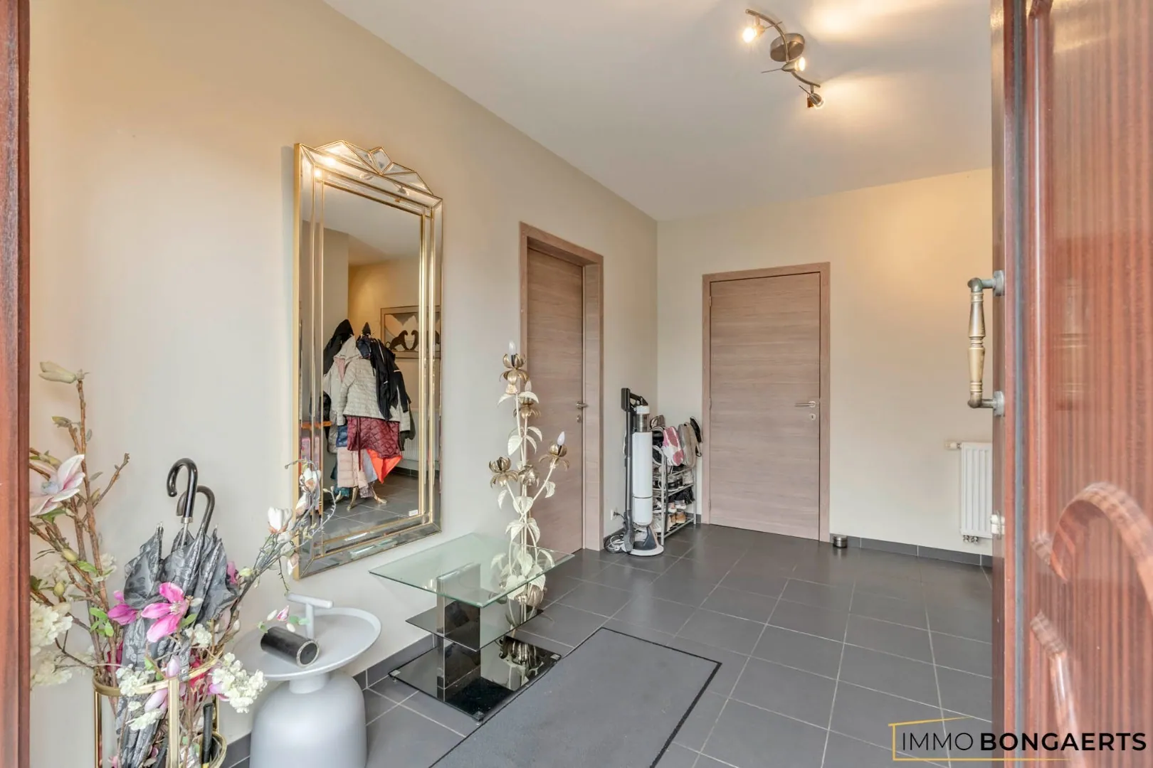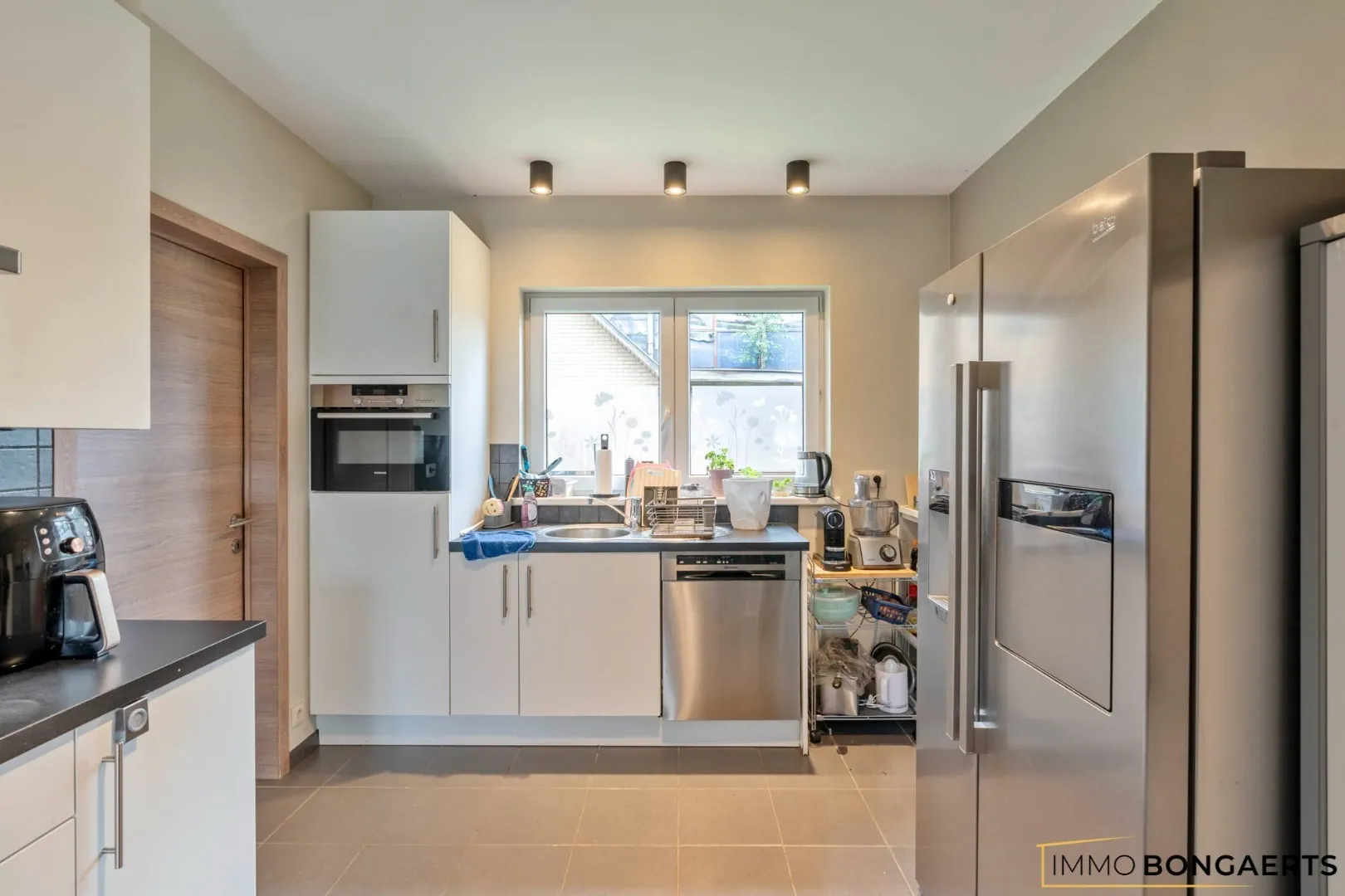 Bij binnenkomst bevinden we ons in de inkomhal. Deze leidt ons naar de ruime woonkamer met veel natuurlijk lichtinval en aansluitend vinden we de tijdloze keuken voorzien van alle comfort. Verder zijn er drie mooie slaapkamers, een badkamer met inloopdouche en een apart toilet.