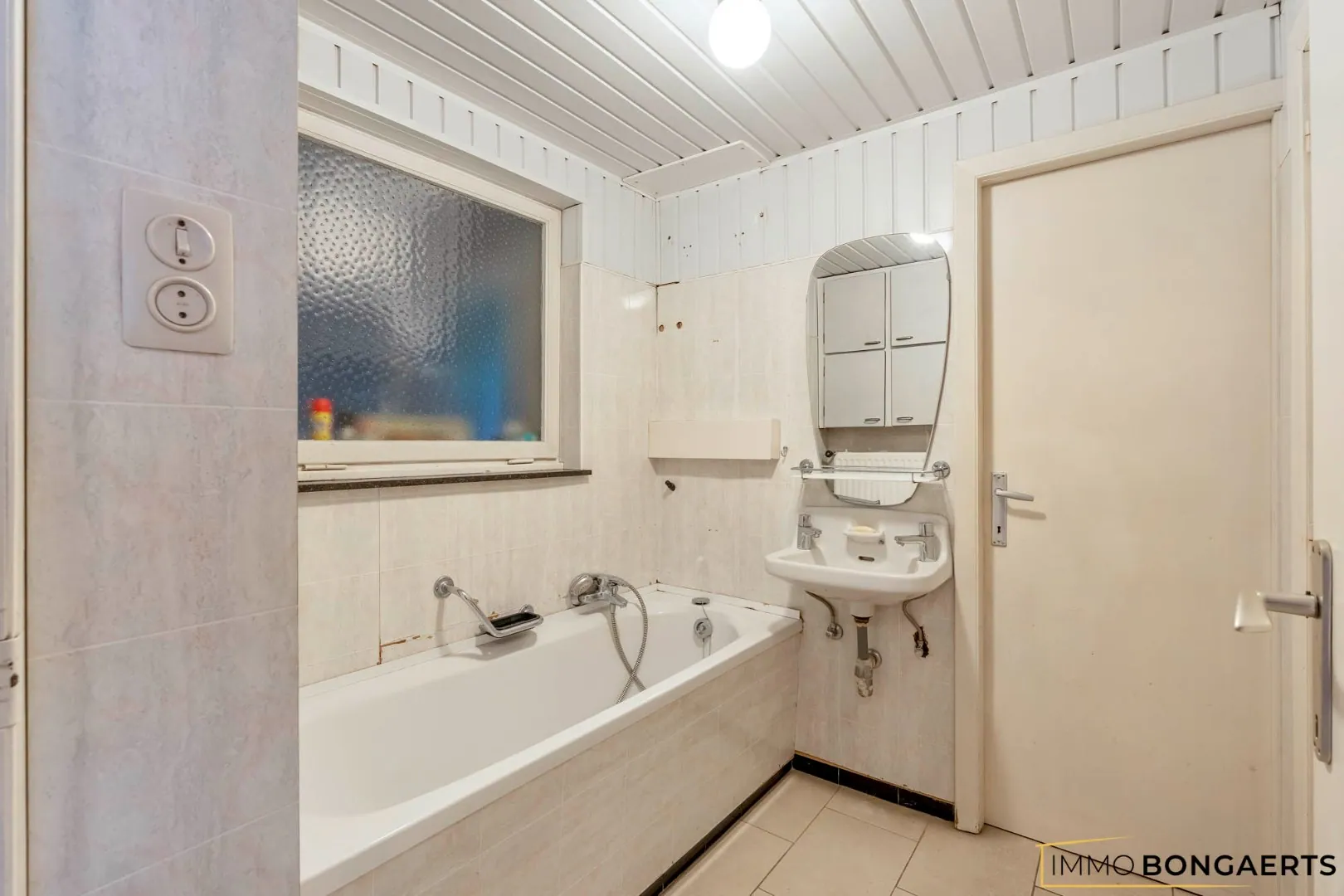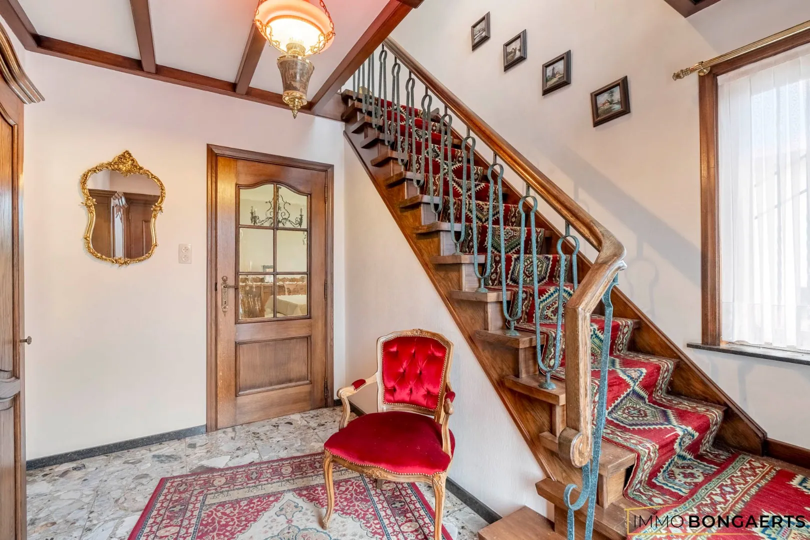- Gelijkvloers met inkomhal, woonkamer, eetkamer, keuken, badkamer, toilet en berging