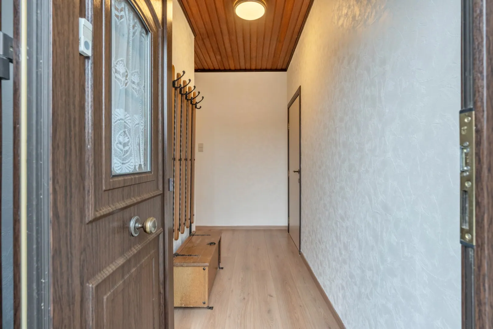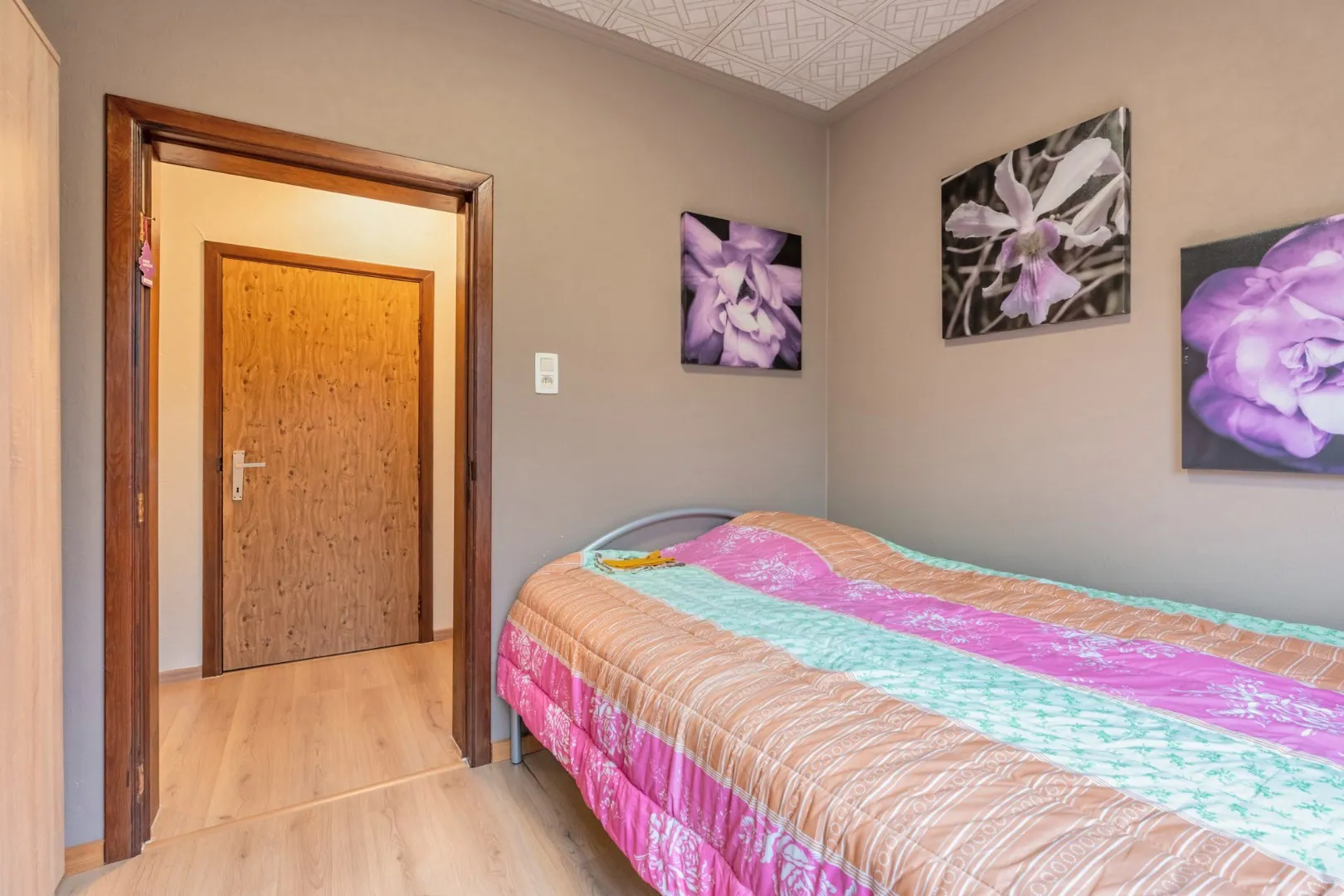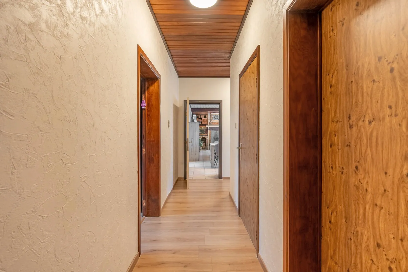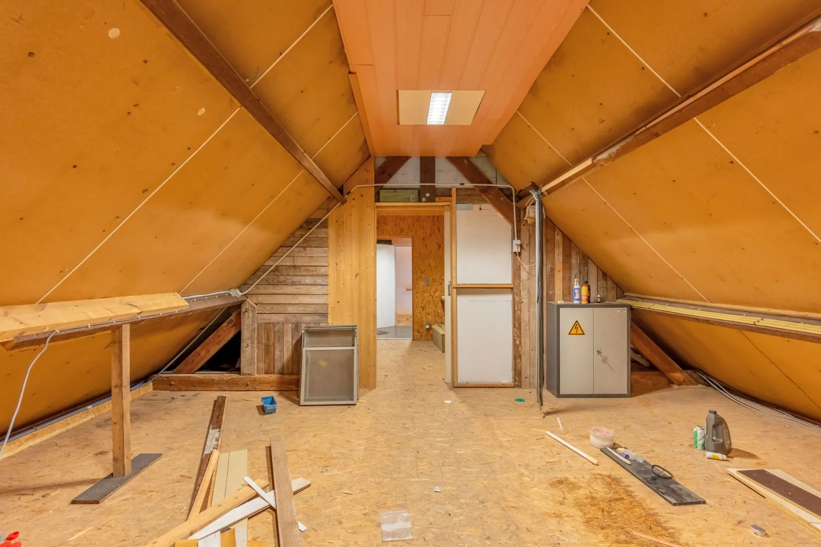Het gelijkvloers beschikt over een inkomhal, leefruimte met open keuken, 3 slaapkamers, dressing en badkamer. De zolder is toegankelijk via een vaste trap en wordt momenteel enkel gebruikt als opslagruimte. Door de grote ruimtes zijn hier nog tal van mogelijkheden. Als kers op de taart vindt u aan de achterzijde een mooie ingesloten tuin.